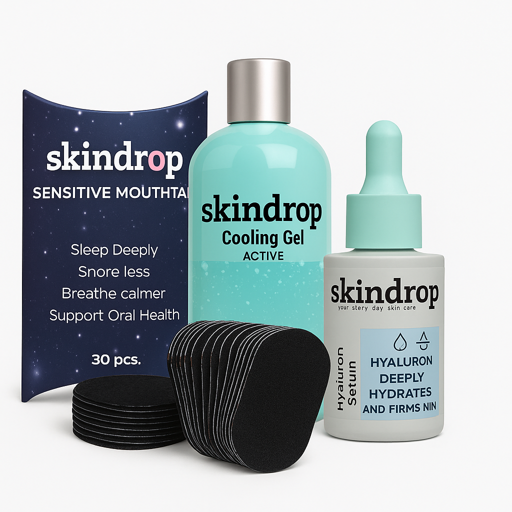 Entdecken Sie einen tieferen, erholsameren Schlaf mit dem Skindrop Mouth Tape. Es wurde entwickelt, um Ihre Lippen über Nacht sanft zu versiegeln und fördert eine gesunde Nasenatmung, reduziert Schnarchen und unterstützt einen besseren Sauerstofffluss, während Sie schlafen. Skindrop ist mit einem weichen, hautfreundlichen Klebstoff hergestellt, der bequem, sicher und einfach anzuwenden ist - damit Sie sich beim Aufwachen erfrischt und energiegeladen fühlen, ganz natürlich.